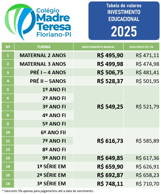 Venha conhecer e matricular seu filho na escola Madre Teresa! Uma escola nova na cidade de Floriano com uma proposta pedagógica diferenciada. Converse como nossos atendentes ou diretamente com a direção da escola.