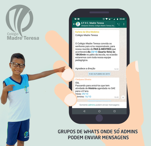 O Colégio Madre Teresa adotou o aplicativo WhatsApp como um meio para realizar o envio dos informativos aos pais, alunos e interessados das respectivas turmas.